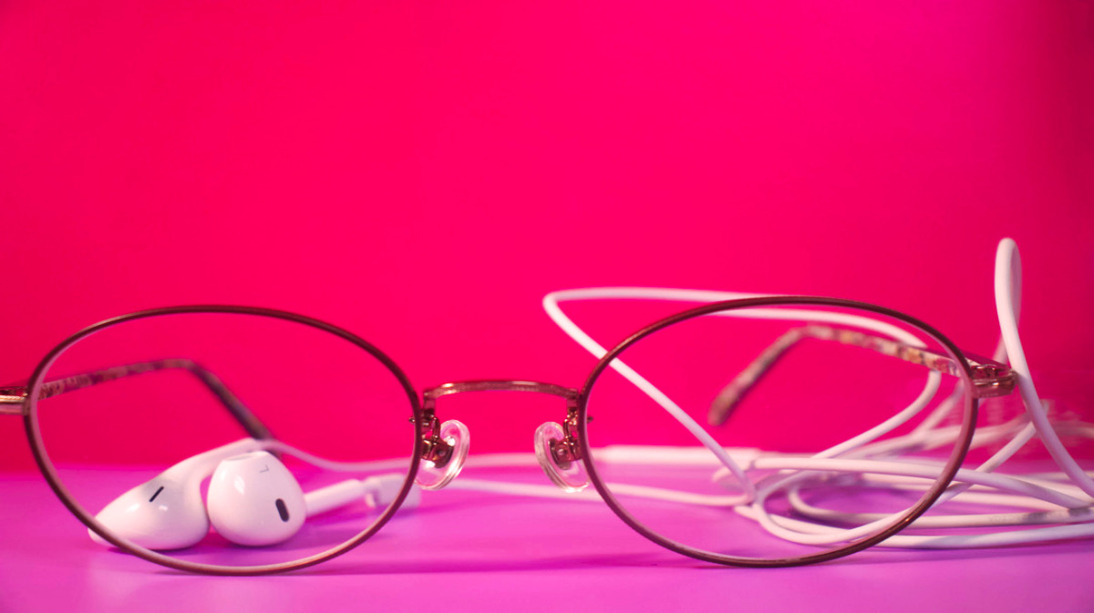 - イヤホンとメガネ