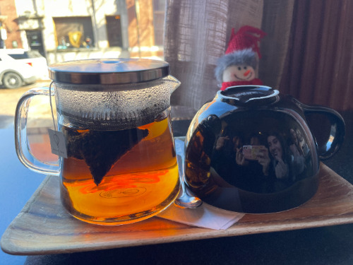 左がティーで右がカフェラテです!私は右のお茶を頼んだのですが、ポットの可愛さにびっくりしました笑