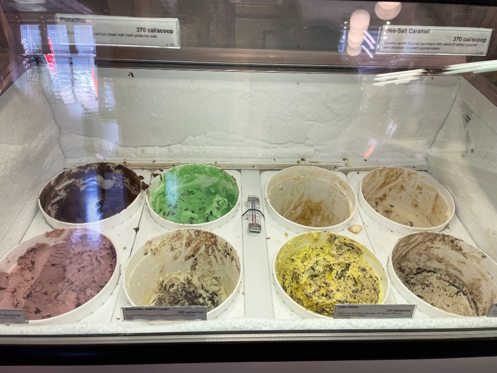 中はこんな感じでアイスとチョコレートが売ってました!!チョコも美味しそうだったのですが、アイスがすごく食べたかったので笑この時はアイスを買いました!!