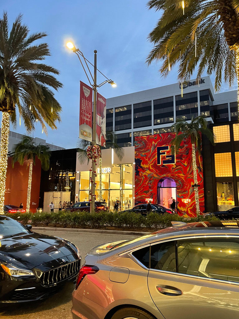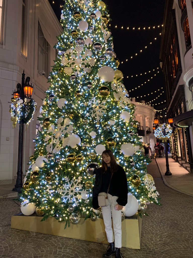 ビバリーヒルズは皆さんの知っている通り、セレブが集まる場所で、ビバリーヒルズにあるRodeo Drive(ロデオドライブ)にはグッチやディオールなどの高級ブランド店が並んでいます。クリスマスの時期だと、やっぱりライトアップされていたので夜景がすごく綺麗でした!