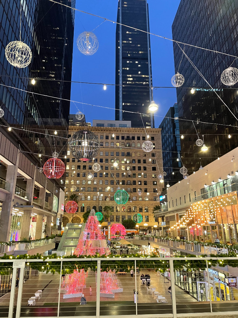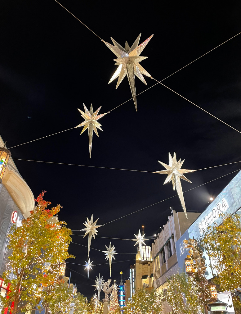 私がLAに行った時はちょうどクリスマスシーズンだったので、ショッピングモールがライトアップされていてすごく綺麗でした!ライトアップされたショッピングモールで写真を撮りたい方はクリスマスの時期に行くことをお勧めします!